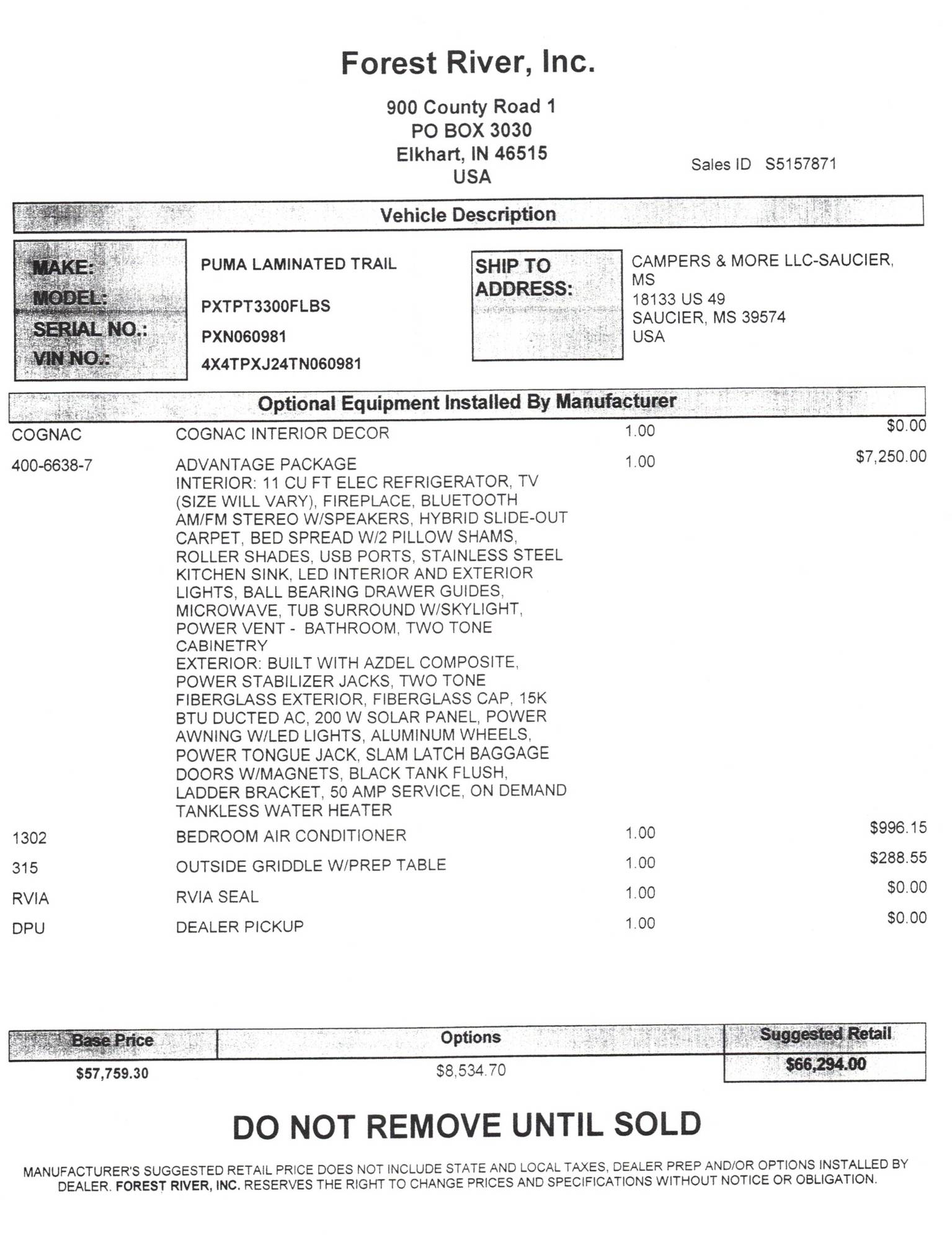 We Have the Lowest Prices on the Internet! Shop for Yourself and See! We Deliver Anywhere! Why Pay More at a Superstore? Nothing Fancy Except Our Campers! Low Upfront Pricing, No Hassles, No Fees. Free Battery and PDI with Every Camper! Owned and Operated by the Andress Family since 2005. Our Prices and Service Before and After the Sale will not be Beat! Financing options are available up to 12 years from as low as 5.99%. (Credit qualifications do apply) All units are serviced and inspected. A final “walk-through” will be performed upon delivery of your camper.