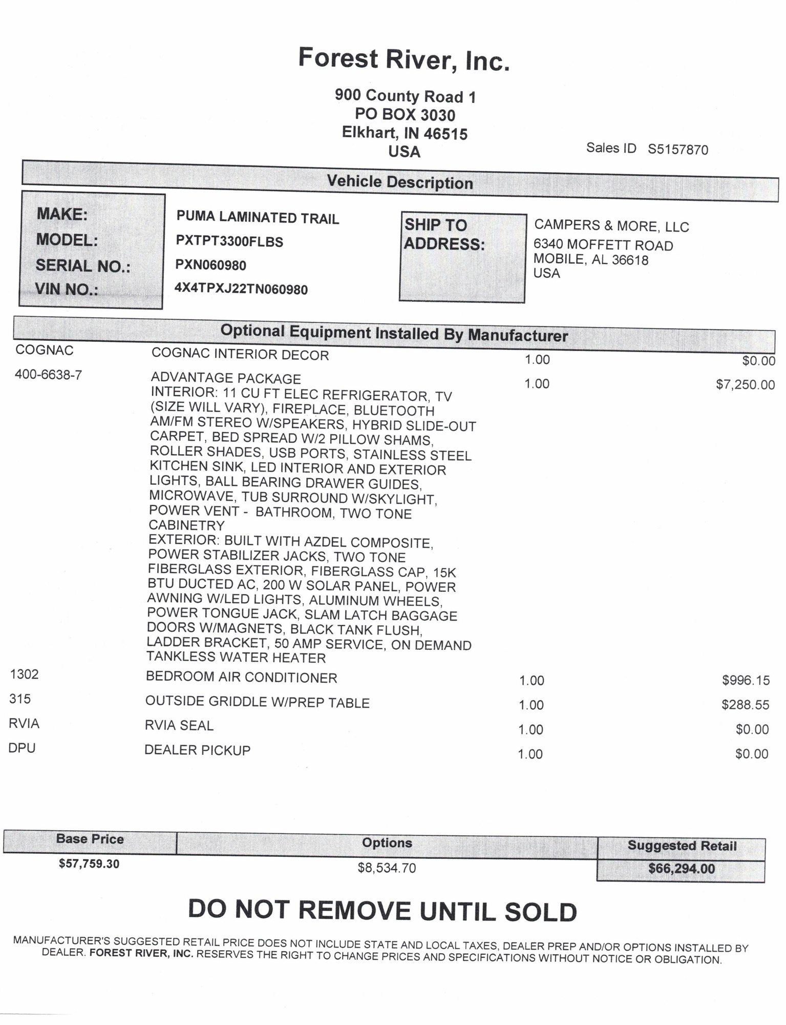 We Have the Lowest Prices on the Internet! Shop for Yourself and See! We Deliver Anywhere! Why Pay More at a Superstore? Nothing Fancy Except Our Campers! Low Upfront Pricing, No Hassles, No Fees. Free Battery and PDI with Every Camper! Owned and Operated by the Andress Family since 2005. Our Prices and Service Before and After the Sale will not be Beat! Financing options are available up to 12 years from as low as 5.99%. (Credit qualifications do apply) All units are serviced and inspected. A final “walk-through” will be performed upon delivery of your camper.