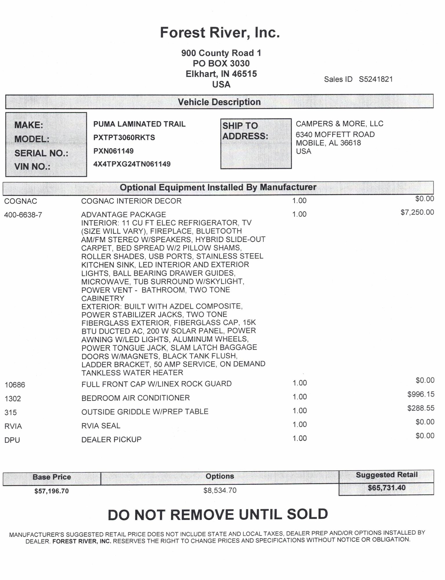 We Have the Lowest Prices on the Internet! Shop for Yourself and See! We Deliver Anywhere! Why Pay More at a Superstore? Nothing Fancy Except Our Campers! Low Upfront Pricing, No Hassles, No Fees. Free Battery and PDI with Every Camper! Owned and Operated by the Andress Family since 2005. Our Prices and Service Before and After the Sale will not be Beat! Financing options are available up to 12 years from as low as 5.99%. (Credit qualifications do apply) All units are serviced and inspected. A final “walk-through” will be performed upon delivery of your camper.