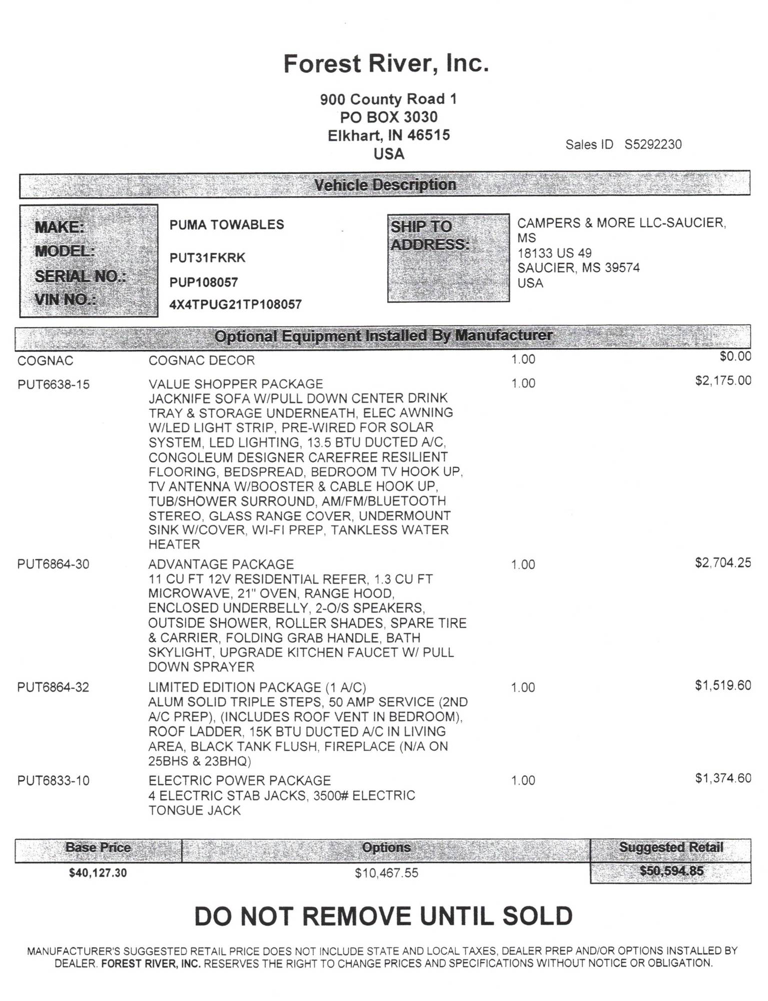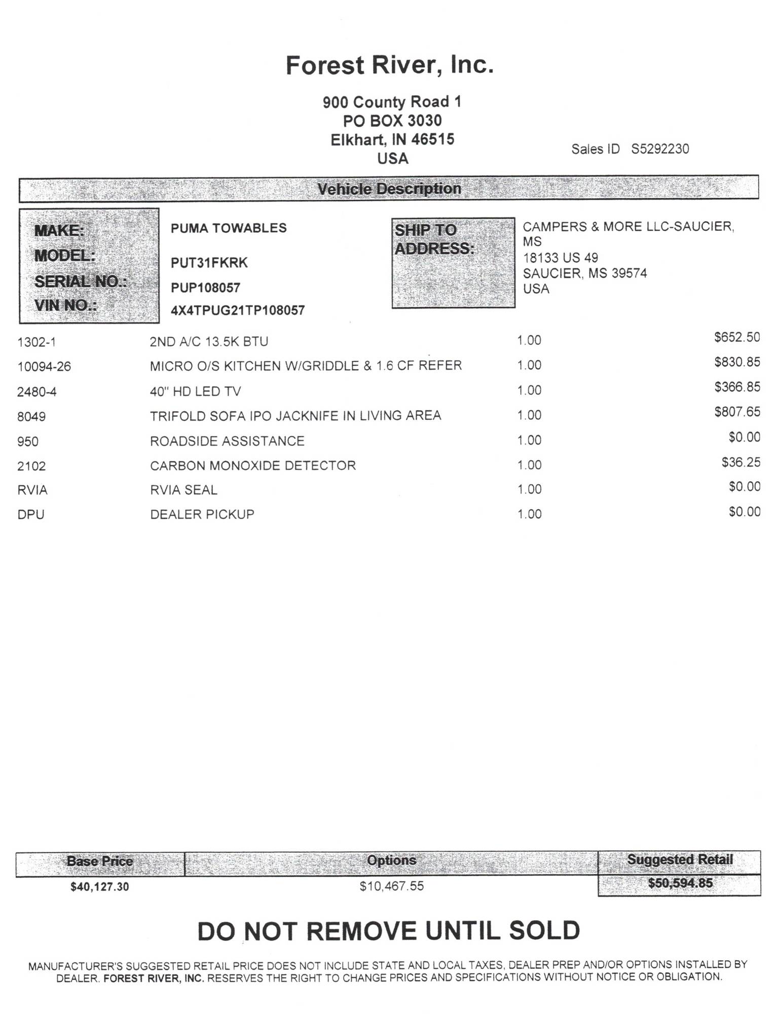We Have the Lowest Prices on the Internet! Shop for Yourself and See! We Deliver Anywhere! Why Pay More at a Superstore? Nothing Fancy Except Our Campers! Low Upfront Pricing, No Hassles, No Fees. Free Battery and PDI with Every Camper! Owned and Operated by the Andress Family since 2005. Our Prices and Service Before and After the Sale will not be Beat! Financing options are available up to 12 years from as low as 5.99%. (Credit qualifications do apply) All units are serviced and inspected. A final “walk-through” will be performed upon delivery of your camper.