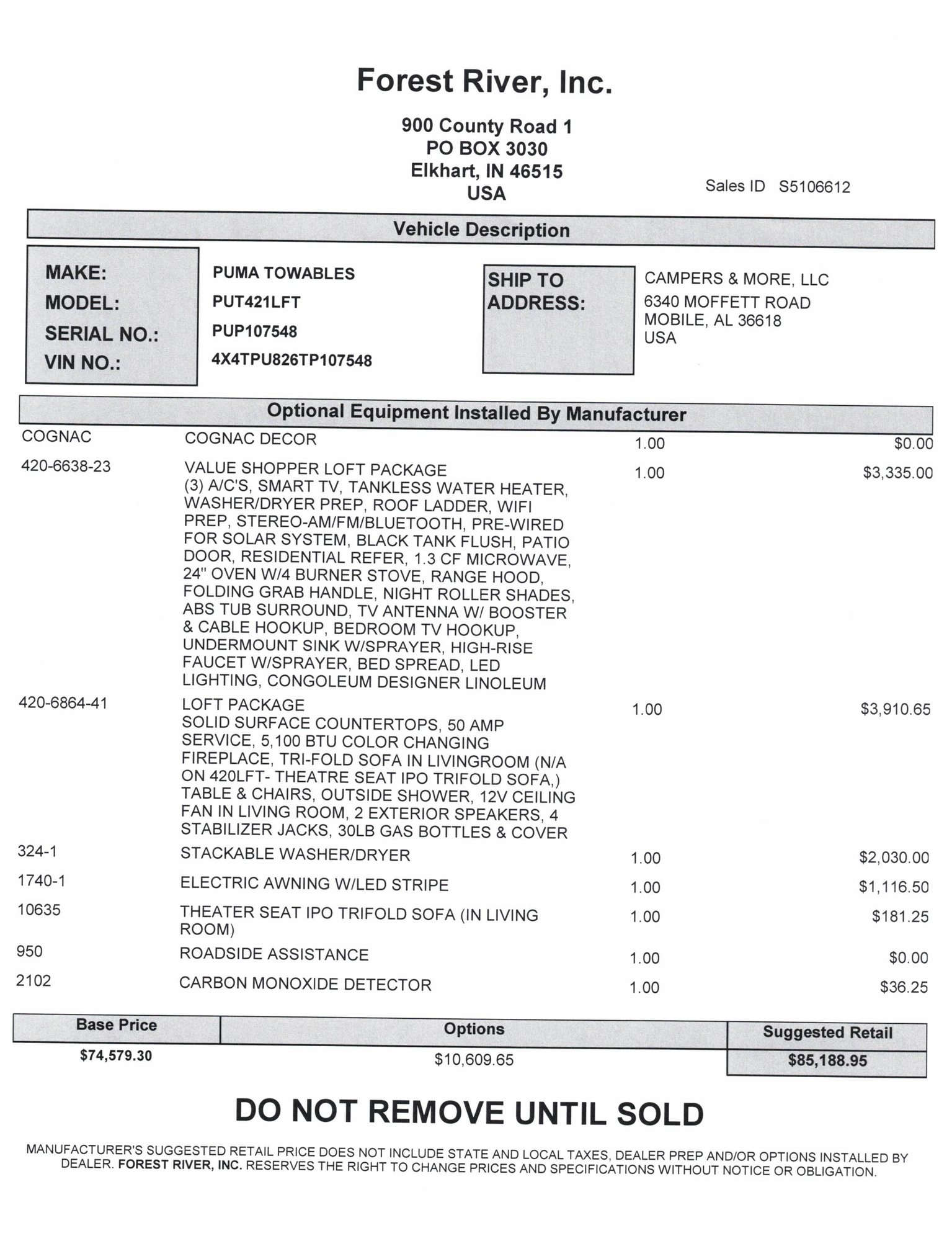 • Puma Vista w/Loft 421LFT