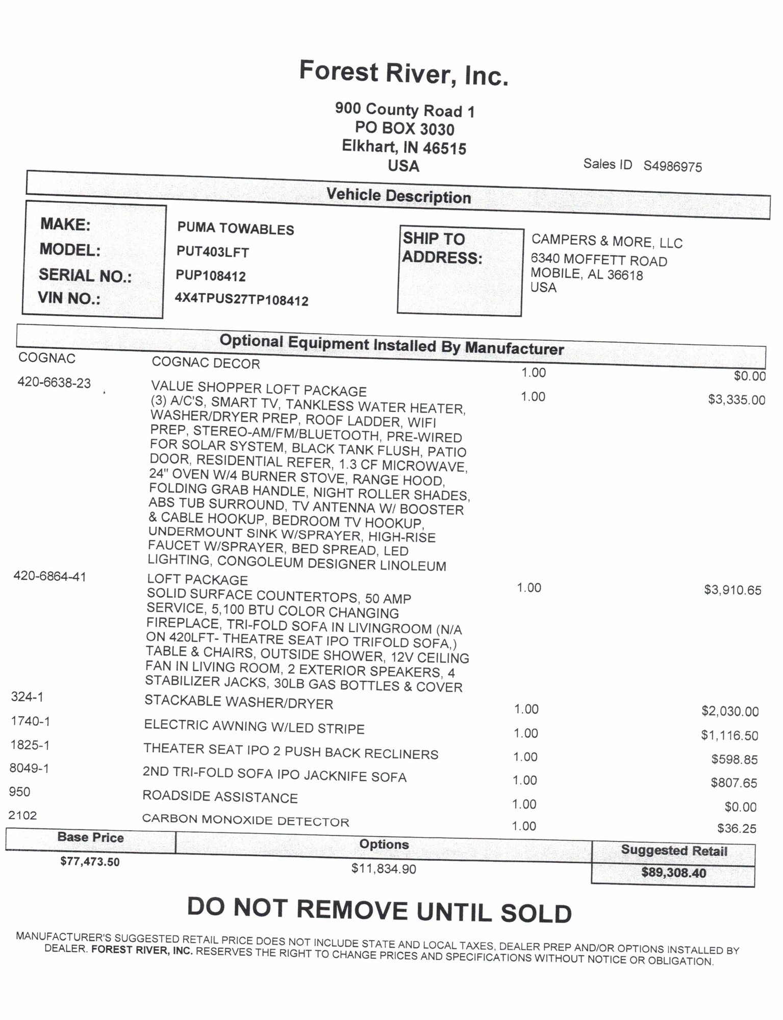 - Puma Vista w/Loft 403LFT